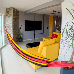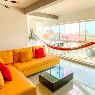 ☀️🍋 A ambientação vibrante desse apto transmite o clima e a energia da praia. Falando em praia, com 1 minuto de caminhada você já estará com os pés na areia. A decor de cores intensas e luzes aconchegantes colocam em sintonia a agitação e a calmaria: dormir ao som do mar depois de um longo e agitado dia na praia. O apto é bem espaçoso: 3 quartos e 2 banheiros, prontos para receber sua família e seus amigos.